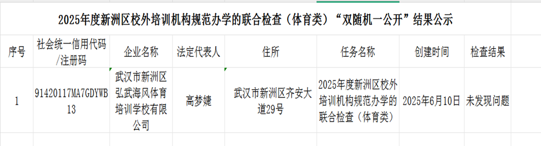 2025年度a片网 校外培训机构规范办学的联合检查(体育类)“双随机、一公开”结果公示