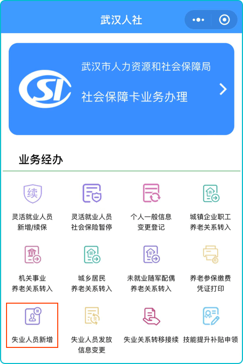 微信扫描下方二维码,进入“武汉社保”小程序,选择“业务经办·失业人员新增”,按照相关提示完整、真实、准确填写信息,点击“提交”完成申领手续。