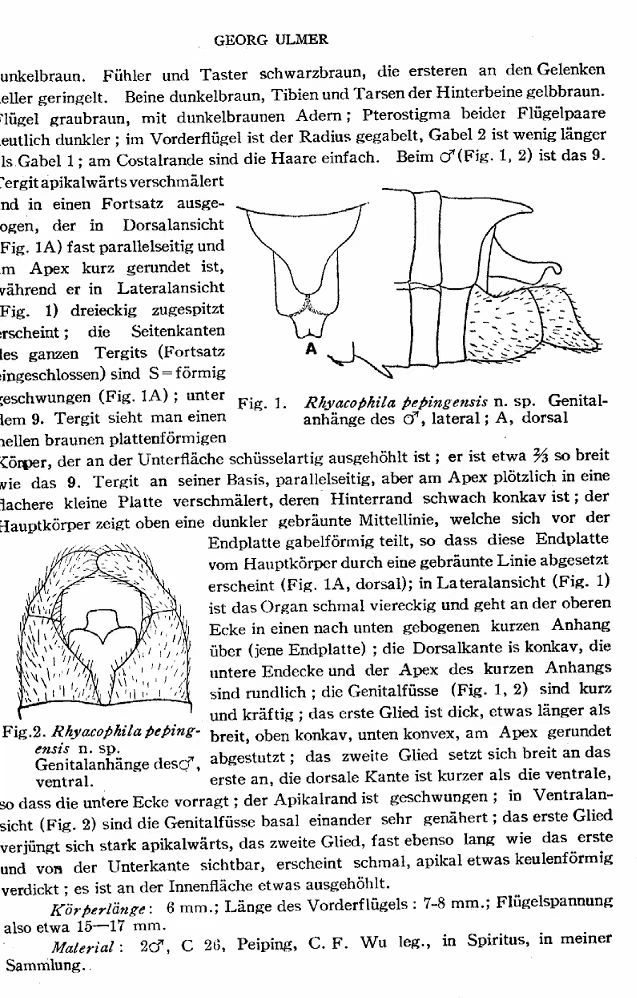 德国昆虫学者厄尔默(Ulmer)发表的原始文献,描述了北京原石蛾的形态和采集信息,文中的手绘图由发表人绘制。