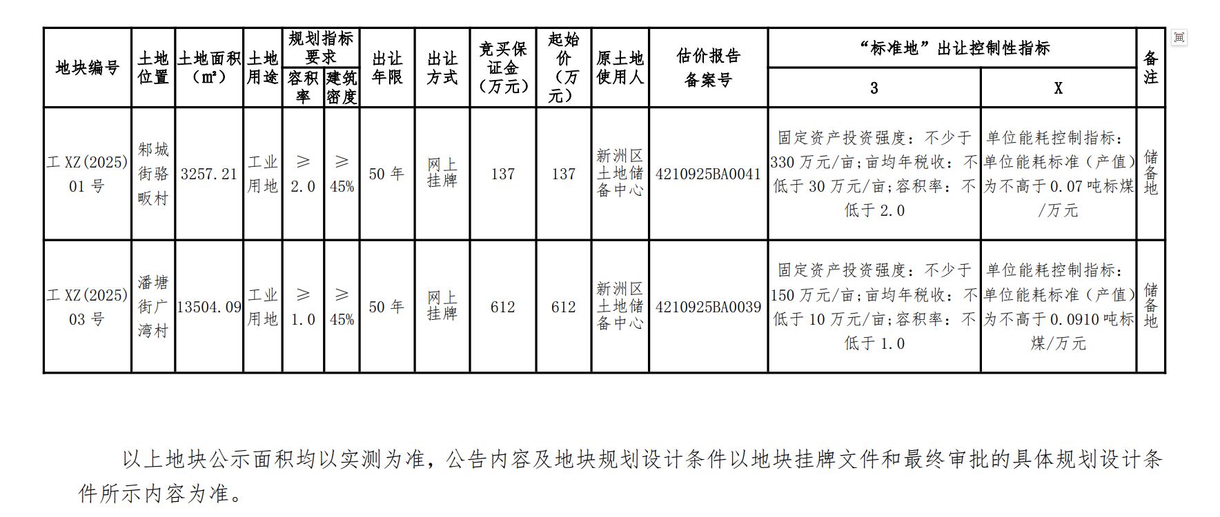 武汉市工业用地网上挂牌出让公告 武工告字(2025年)21号