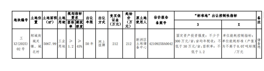 武汉市工业用地网上挂牌出让公告 武工告字(2025年)22号