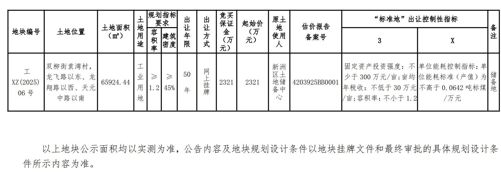 武汉市工业用地网上挂牌出让公告 武工告字(2025年)51号
