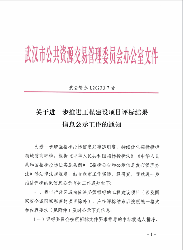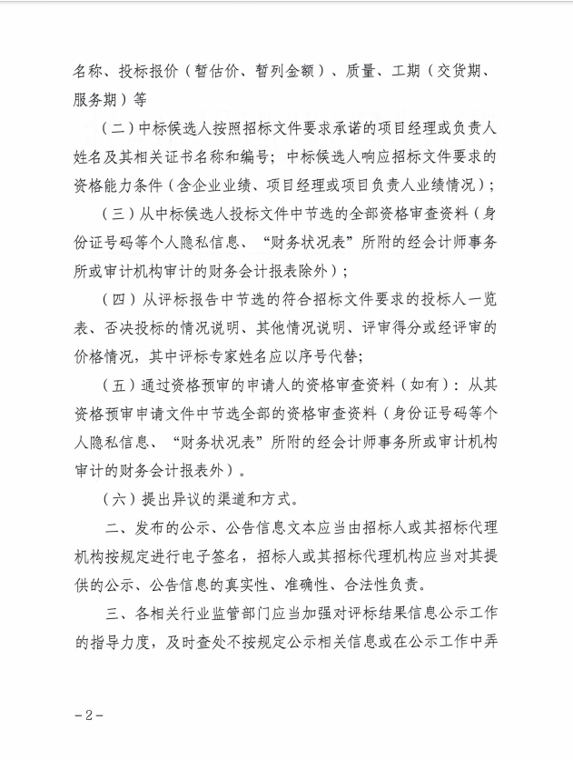 关于进一步推进工程建设项目评标结果信息公示工作的通知