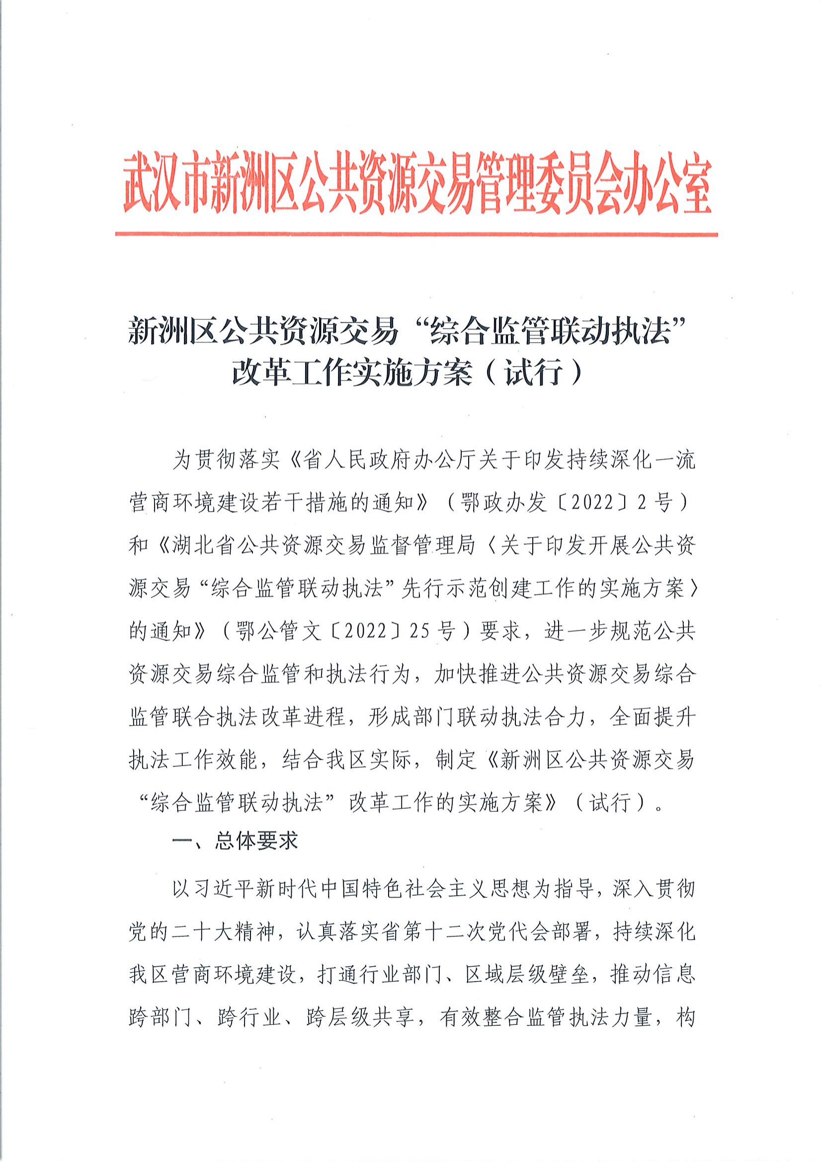 a片网 公共资源交易“综合监管联动执法” 改革工作实施方案(试行)