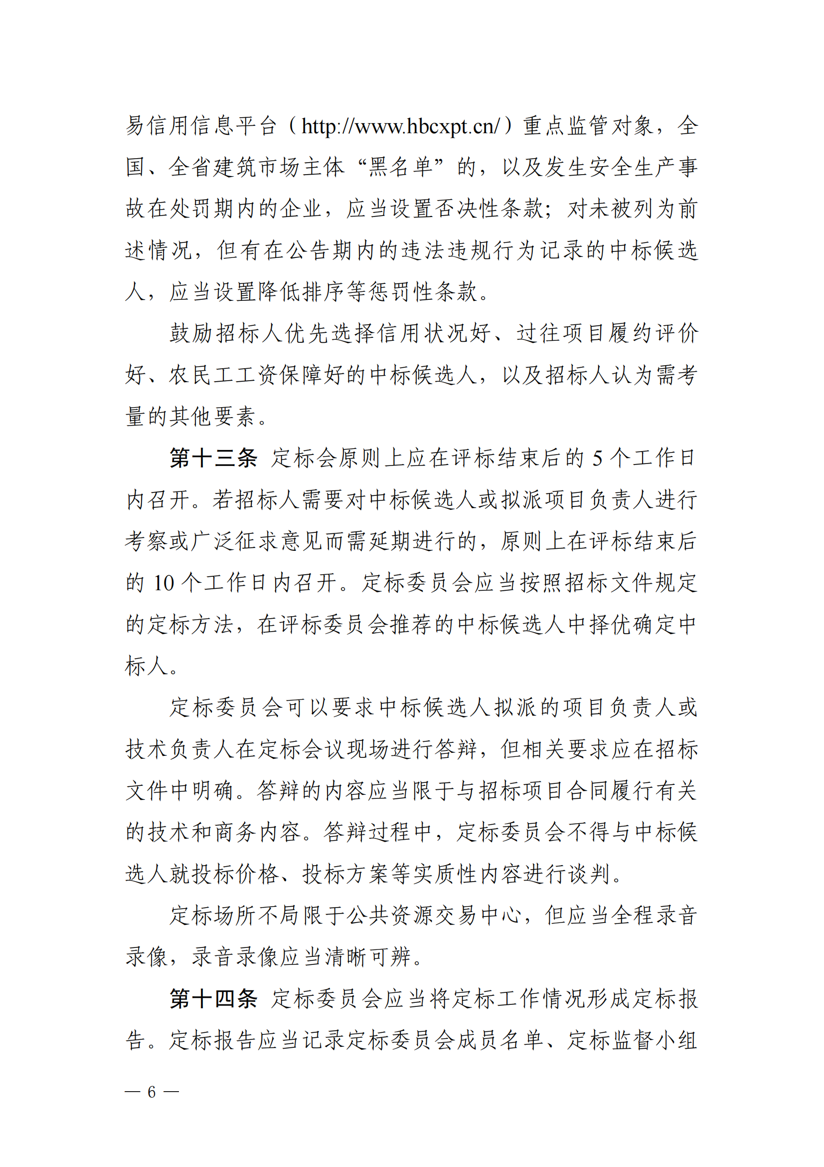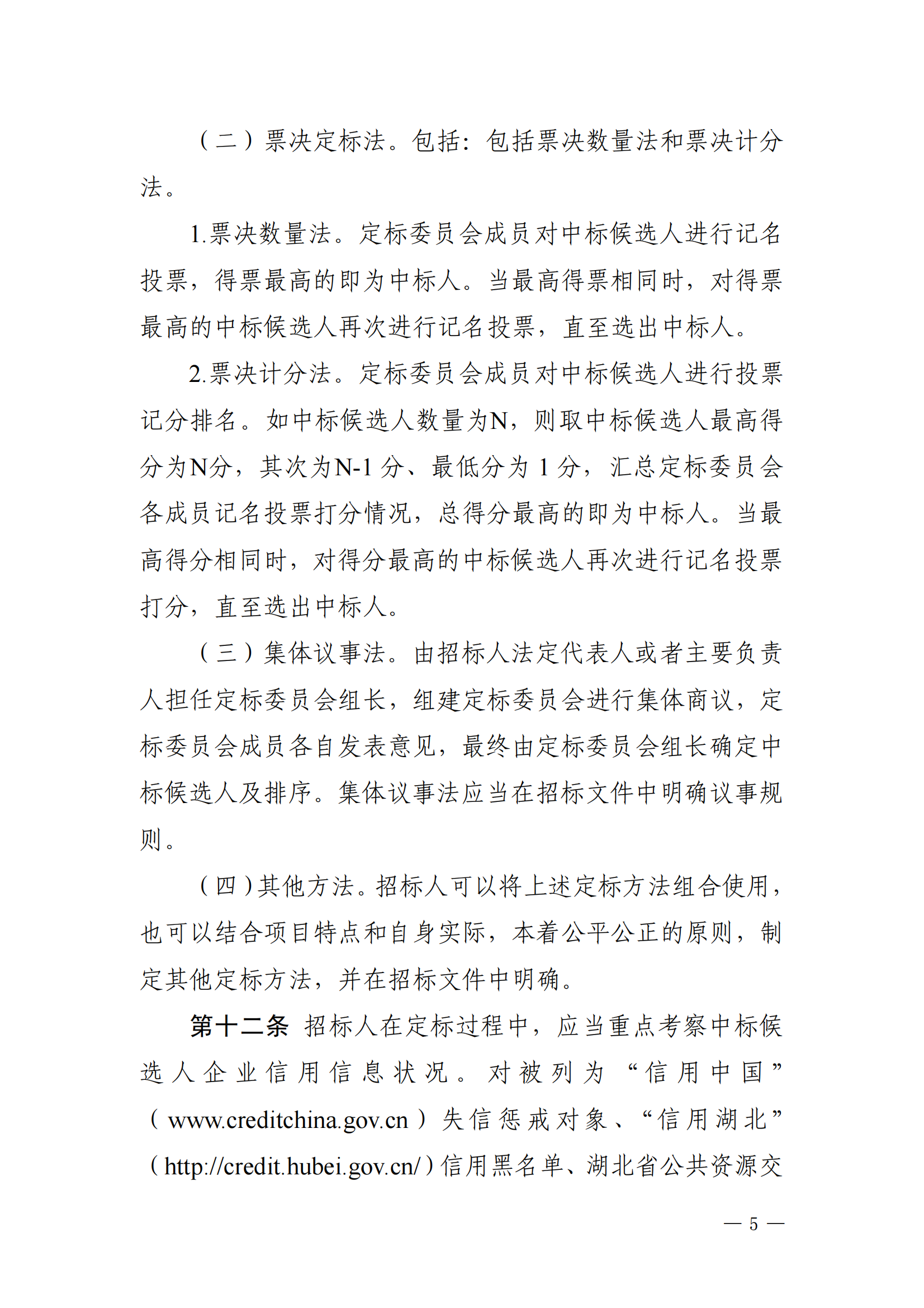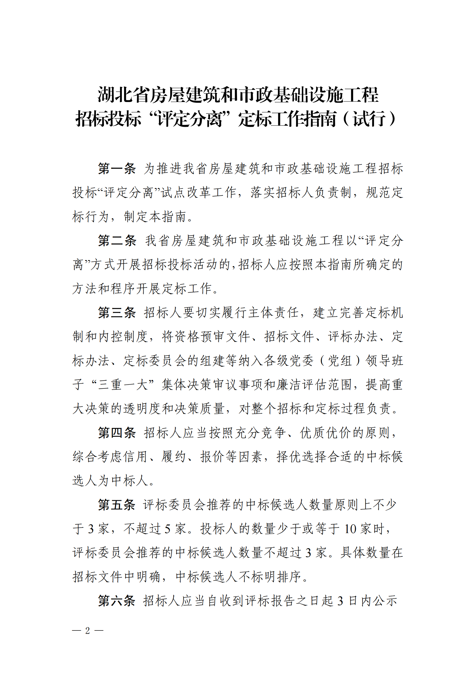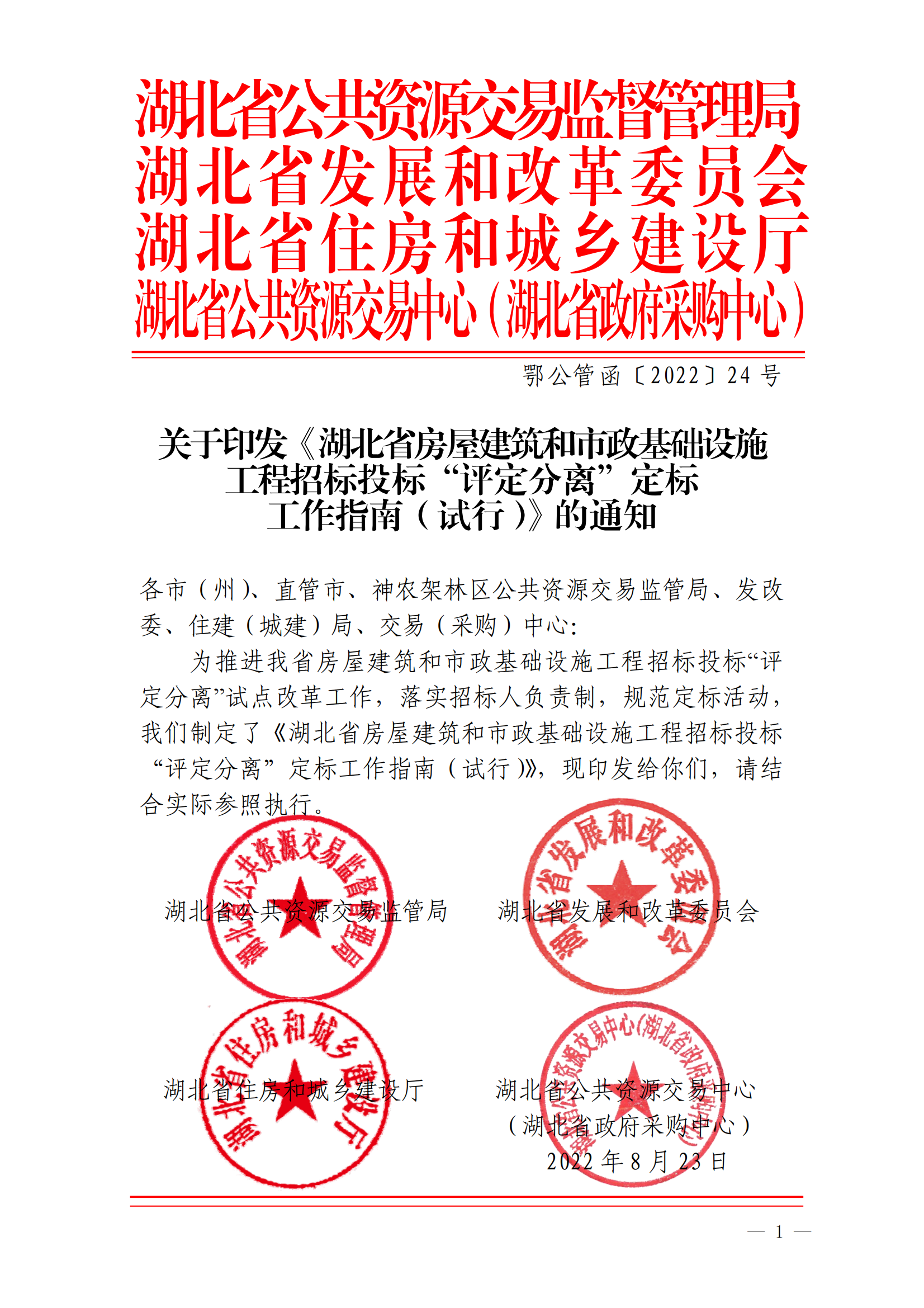 《湖北省房屋建筑和市政基础设施工程招标投标“评定分离”定标工作指南(实行)的通知》(鄂公管函[2022]24号)