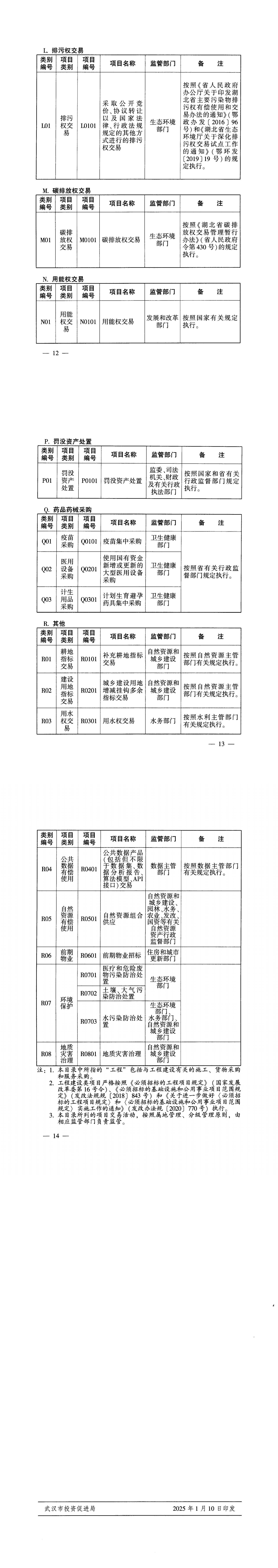 市投资促进局关于印发《武汉市公共资源 交易目录(2025年版)》的通知
