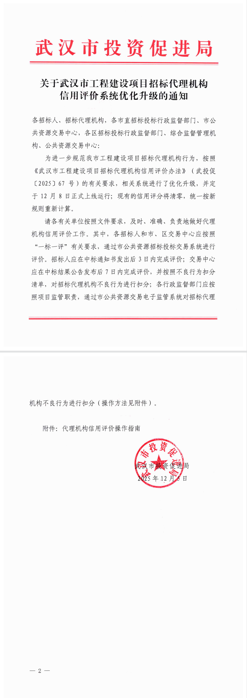 关于武汉市工程建设项目招标代理机构信用评价系统优化升级的通知