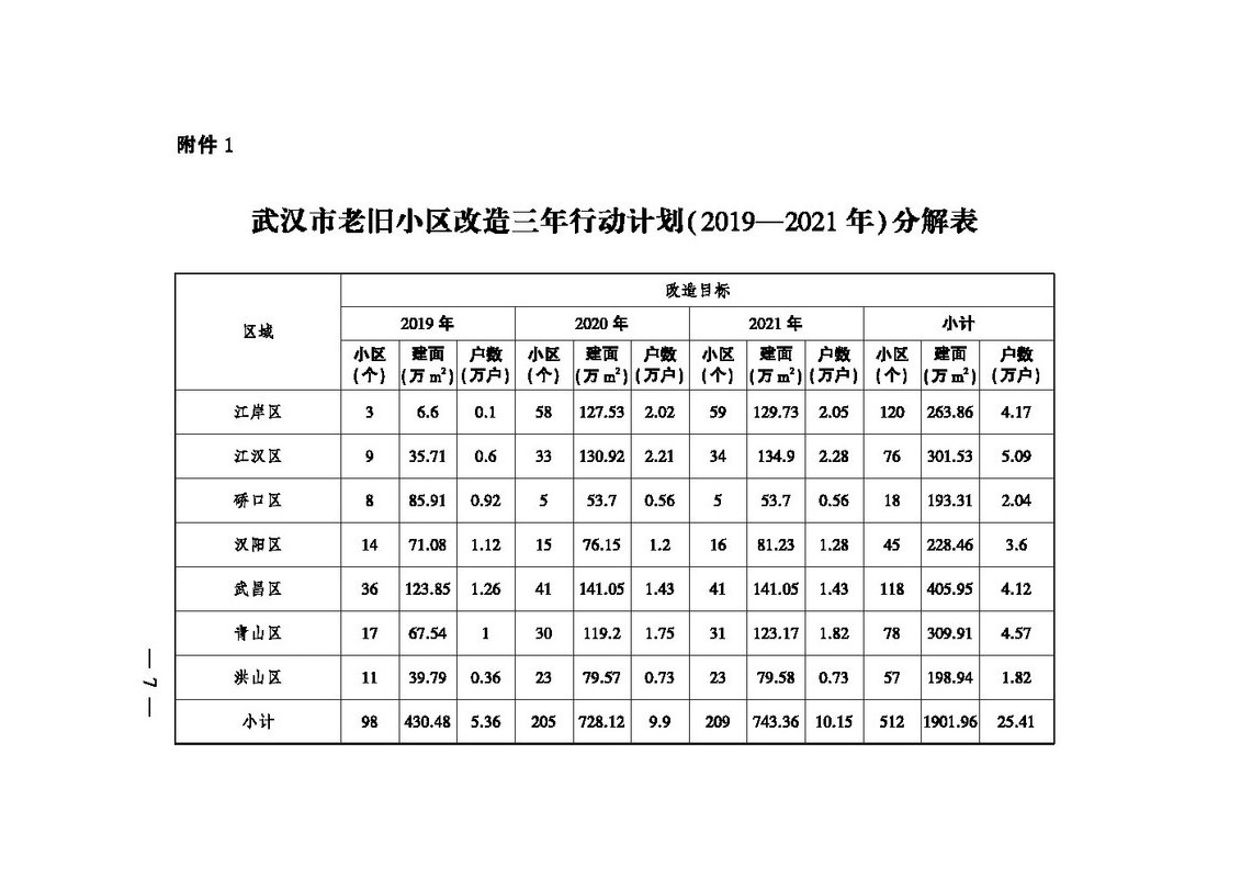 附件:1.武汉市老旧小区改造三年行动计划(2019—2021年)分解表