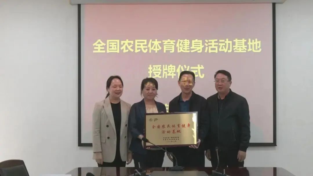 5月11日,湖北省农民体育协会、市农业农村局相关负责人为a片网 凤凰镇授牌“全国农民体育健身活动基地”。