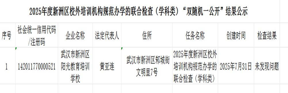 2025年度a片网 校外培训机构规范办学的联合检查(学科类)“双随机、一公开”结果公示