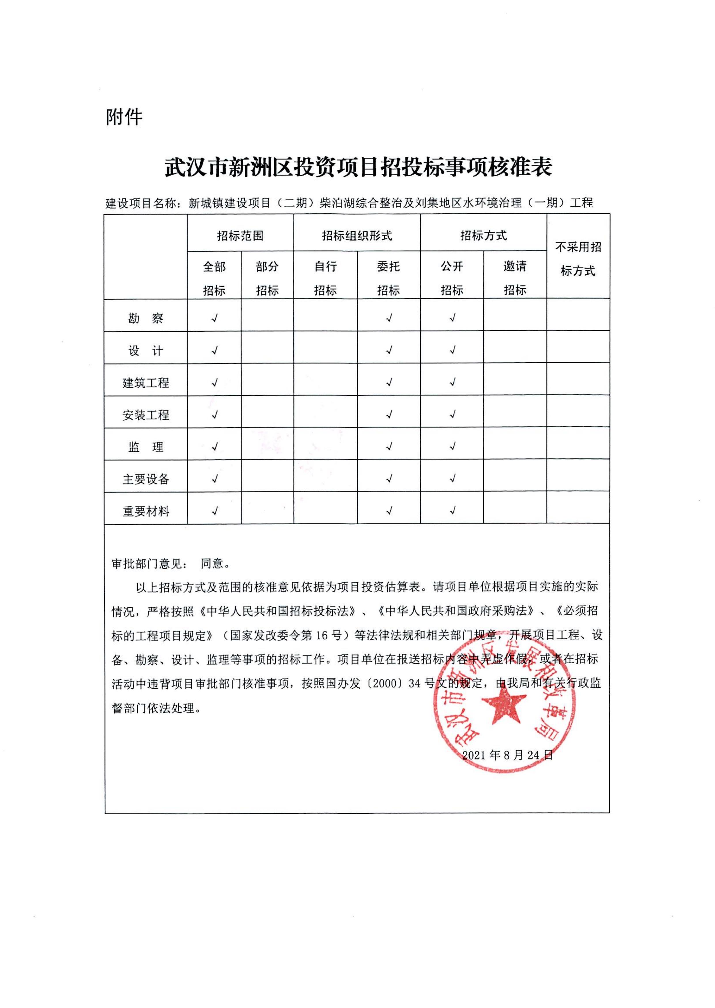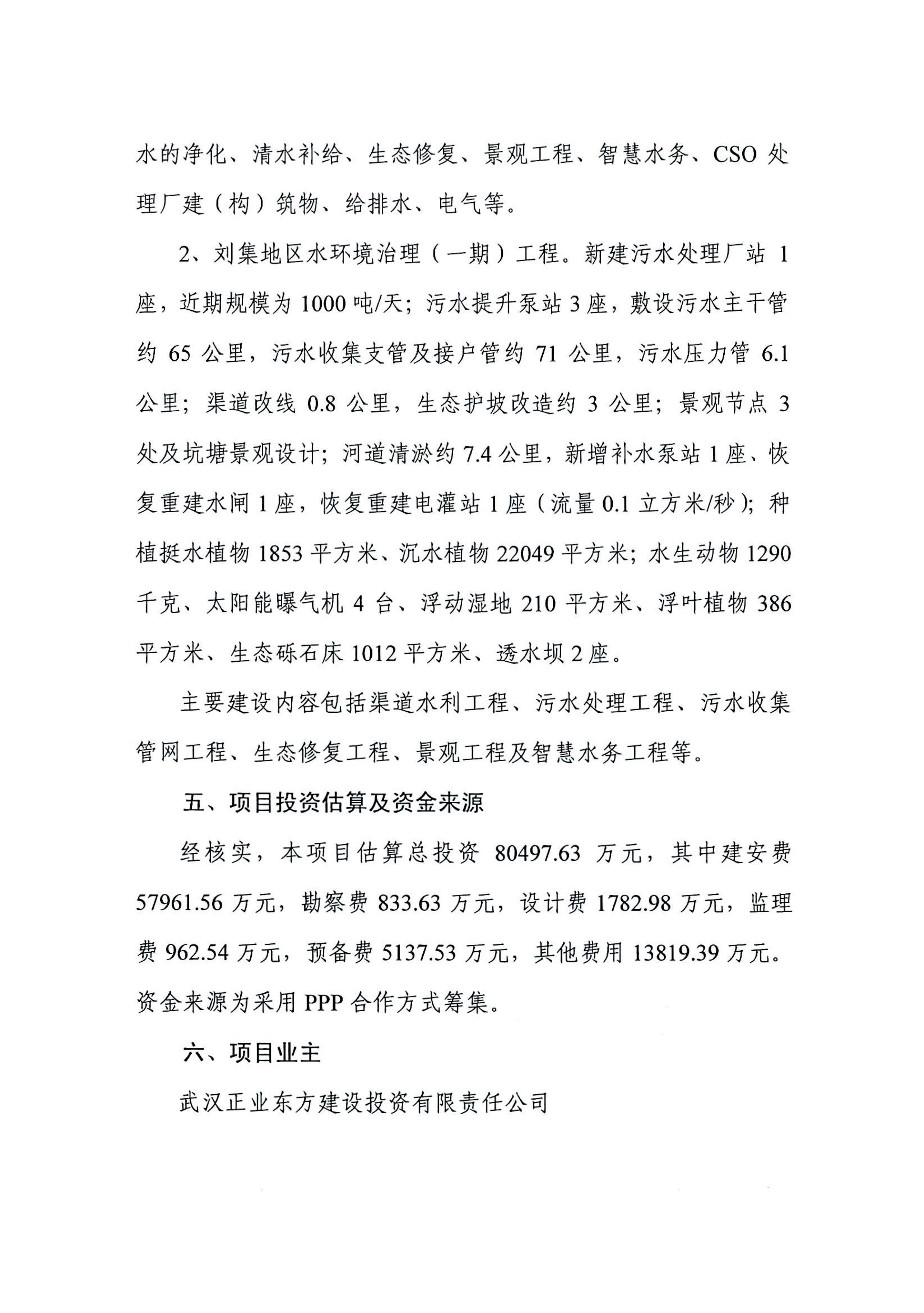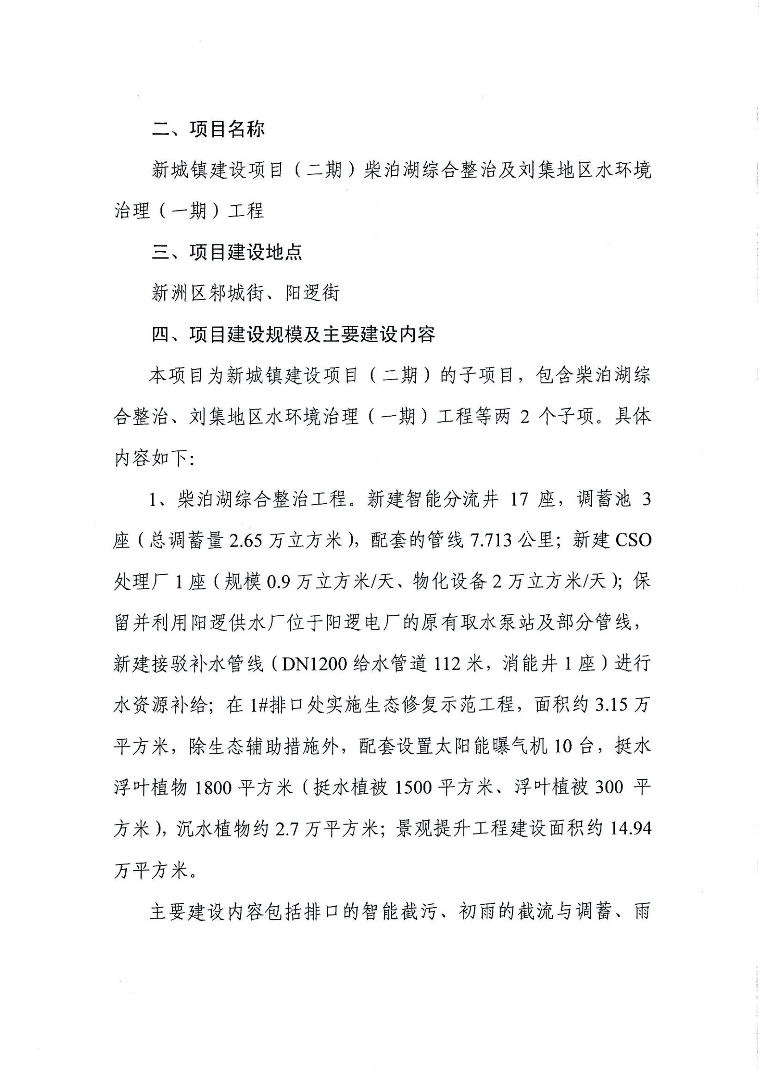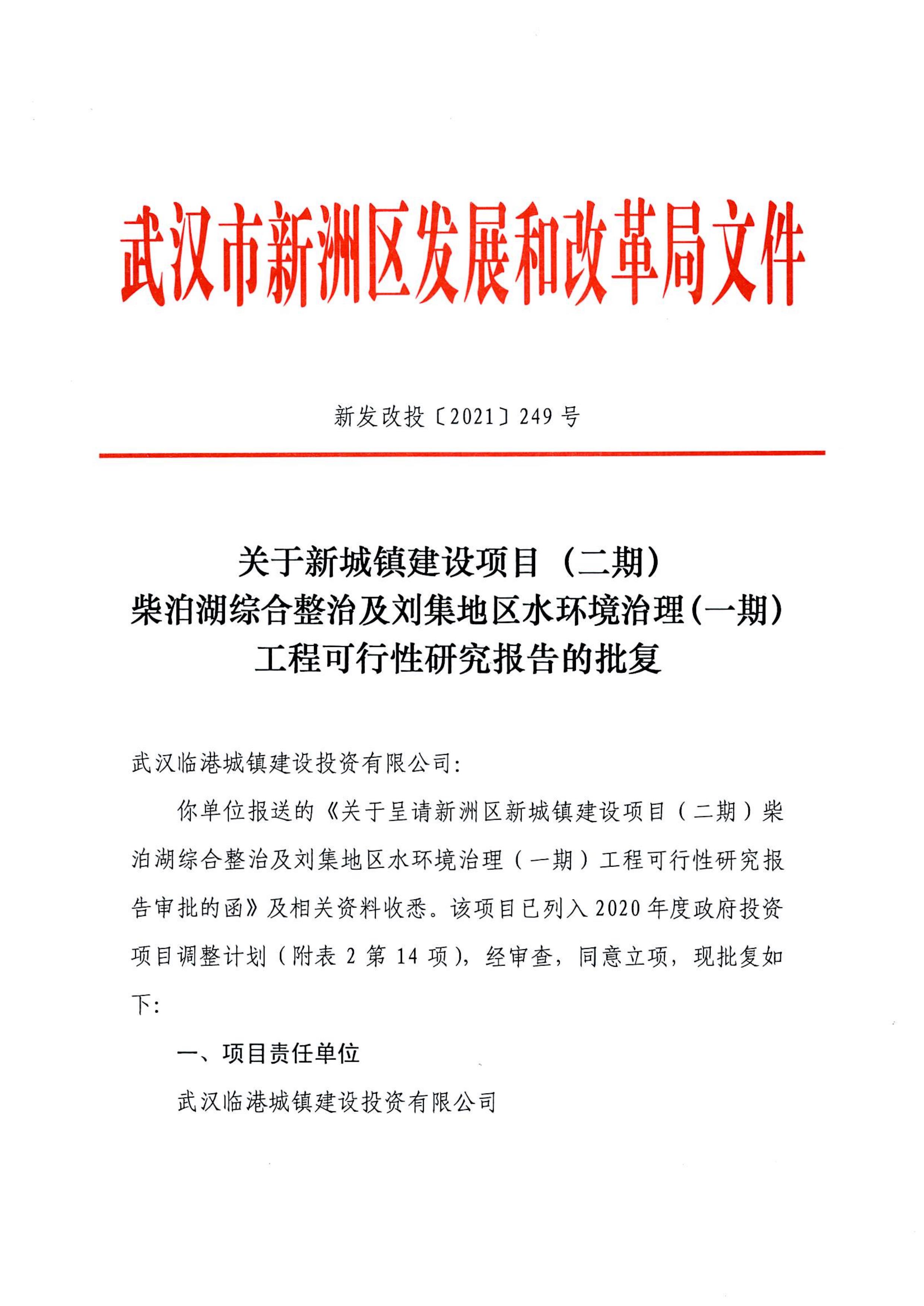 关于新城镇建设项目(二期)柴泊湖综合整治及刘集地区水环境治理(一期)工程可行性研究报告的批复